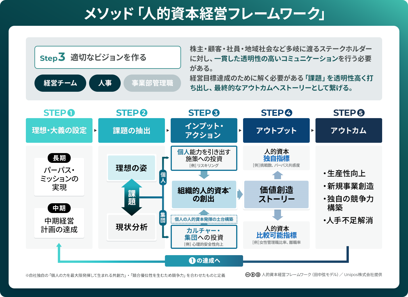 本ステップでは、「人的資本経営フレームワーク」を使用し、カルチャー変革のビジョンを設定します。