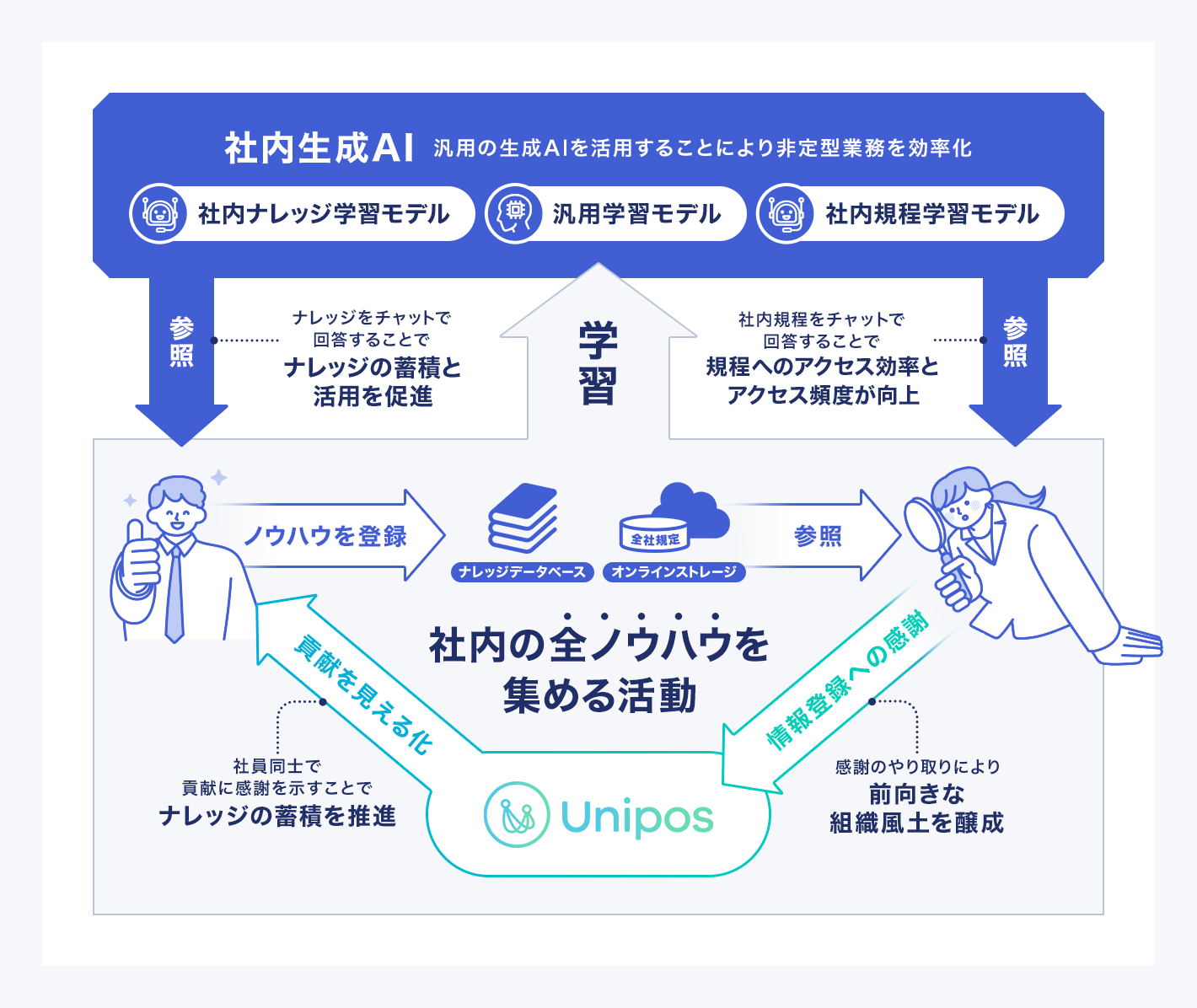感謝の文化の定着をみて、今ならいけるのでは?と、ナレッジ基盤の構築と推進を始めました。現在は、溜まったノウハウや業務ナレッジを生成AIにチャットで問合せできる「社内生成AI基盤」を構築し、全社で活用しています。生成AIが急速に広まった際、すぐにここまで立ち上げできたのも、感謝とナレッジ蓄積を同時に推進してきたからだと思っています。